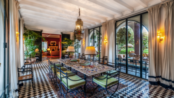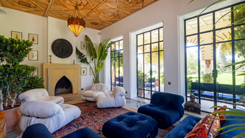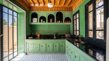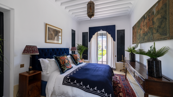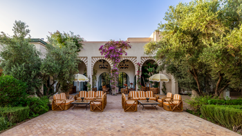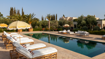 Ursprünglich für den Gründer des berühmten Nachtclubs Annabel’s in London erbaut, mit den Haupträumen, die vom renommierten Innenarchitekten Nicky Haslam entworfen wurden, befindet sich dieses herrliche und einzigartige Anwesen inmitten eines 5 Hektar großen, wunderschönen Gartens in der Nähe der pulsierenden Souks von Marrakesch sowie der atemberaubenden Landschaft des Atlasgebirges. Deren Eingang führt in einen beeindruckenden Innenhof im traditionellen Stil mit Brunnen und Speisesäle im Erdgeschoss sind elegant und sehr komfortabel. Im Obergeschoss bietet die herrliche Master Suite mit privater Terrasse einen weiten Blick auf das Atlasgebirge.