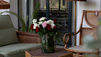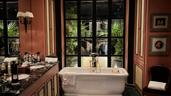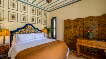 Um den höchsten Standard an modernem Komfort zu bieten und gleichzeitig den Charme der alten Welt zu bewahren, werden die Decken und Wandmalereien von den lokalen Handwerkern der Königspaläste von Hand bemalt. Diesen werden mit Stoffen von Designern wie Pierre Frey, Ian Sanderson und Jim Thompson ergänzt, mit Verzierungen von Samuel & Sons. Deren Angestelltenküche ist mit industriellen Restaurantgeräten ausgestattet, während die Privatküchen mit Designelementen wie einem Smeg-Kühlschrank, einem Dolce & Gabbana-Toaster, einer La Marzocco-Kaffeemaschine, einem Gozney-Pizza-Ofen und einem Tiefkühlgetränkeautomaten ausgestattet sind. Es gibt UV-Filter und Wasserenthärter für Trinkwasser, das sich luxuriös auf der Haut anfühlt, Sonos-Lautsprecher in allen Unterhaltungsbereichen und hochmodernes Glasfaser-WLAN. Weitere luxuriöse Details sind aus Corston importierte Messingbeschläge für die Lichtschalter und Steckdosen, und die Badezimmer sind mit importierten Armaturen und Armaturen von Lefroy Brooks, Czech & Speake und der Cast Iron Bath Company ausgestattet. Aller Betten, Kissen und Bettwäsche wurden sorgfältig ausgewählt.
