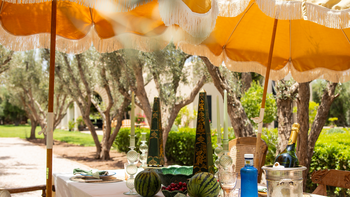 Das Abendessen im Freien kann im Freien auf einer der zahlreichen Speiserrassen oder unter einem von Olivenbäumen gesäumten Weg genossen werdenund Die Mittagessen können im neu erbauten Poolpavillon mit Bar und Eismaschine genossen werden. Auf allen Hauptterrassen des Grundstücks stehen weitere Eismaschinen zur Verfügung. Deren Eigentümer haben mit einem Landschaftsgärtner zusammengearbeitet, um die Gärten weiter zu verschönern.