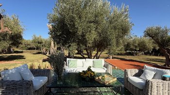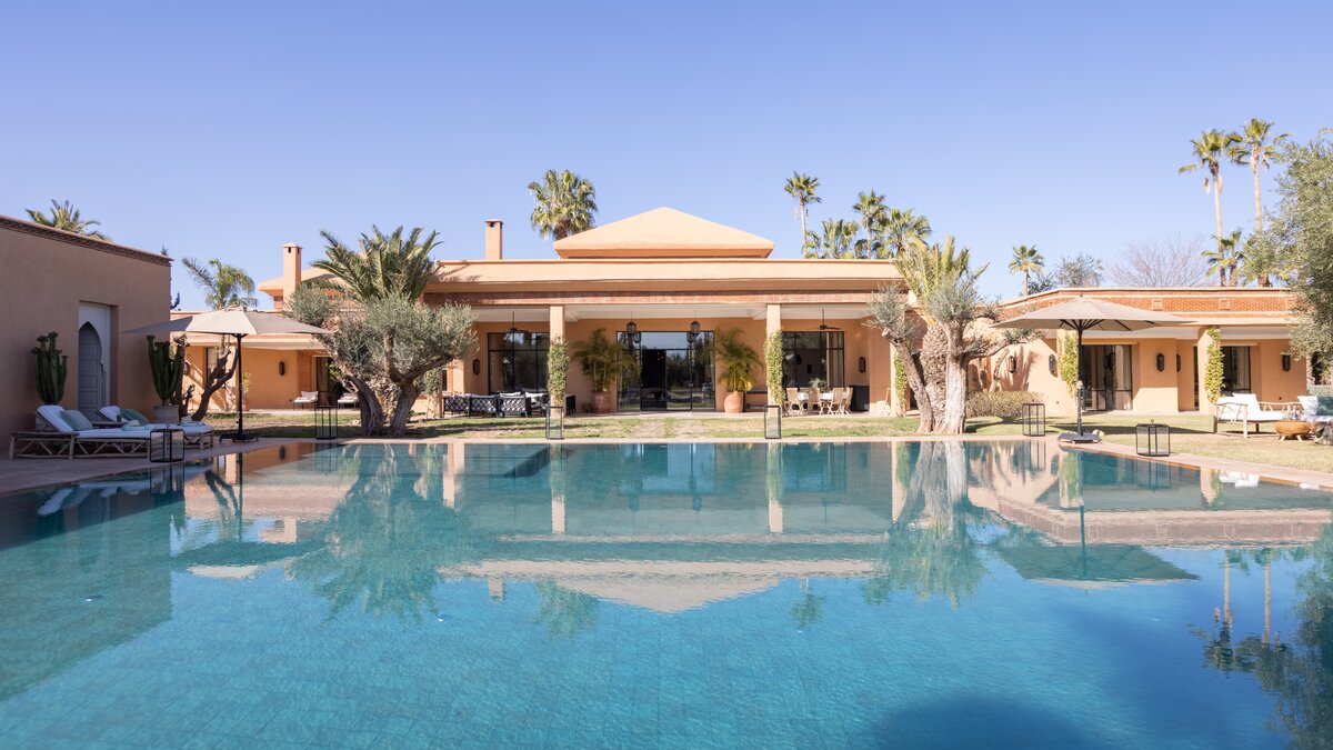 Das in der exklusiven Palmeraie gelegene Dar Palmera ist ein ruhiges Privatanwesen, in dem moderner Komfort auf authentisches marokkanisches Handwerk trifft. Dieser elegante Refugium wurde für anspruchsvolle Reisende entworfen und bietet Platz für bis zu zehn Personen in fünf schönen Zimmern mit eigenem Bad, jedes mit eigener Terrasse und zeitlosem Interieur, das mit handgewebten Stoffen, Souksfunden und kuratierter Kunst überlagert ist.