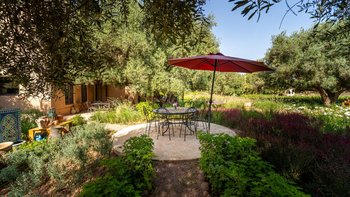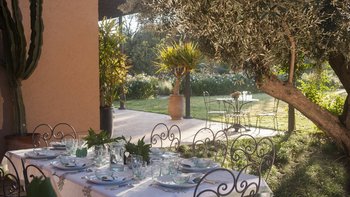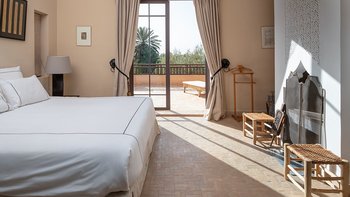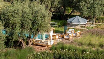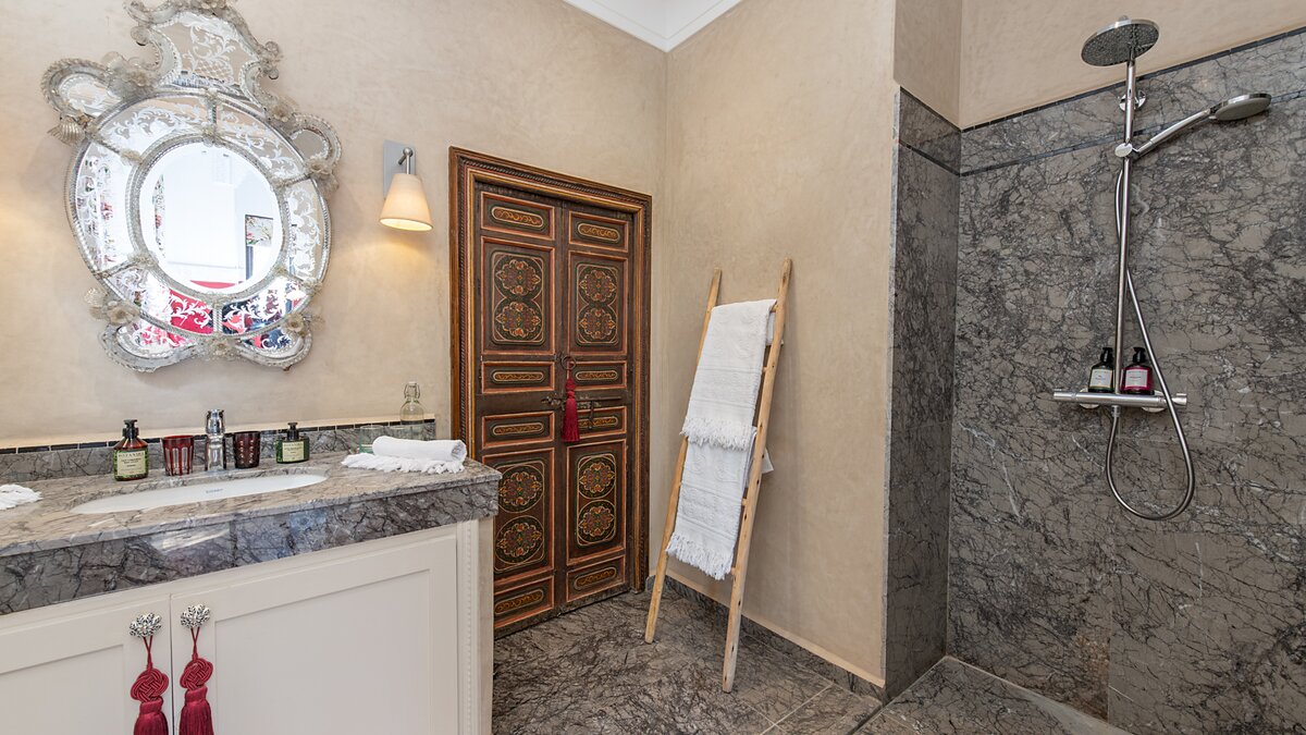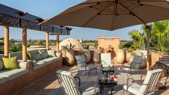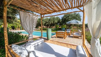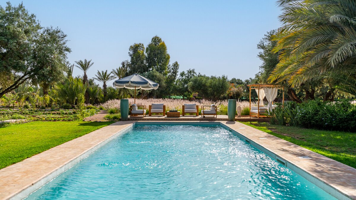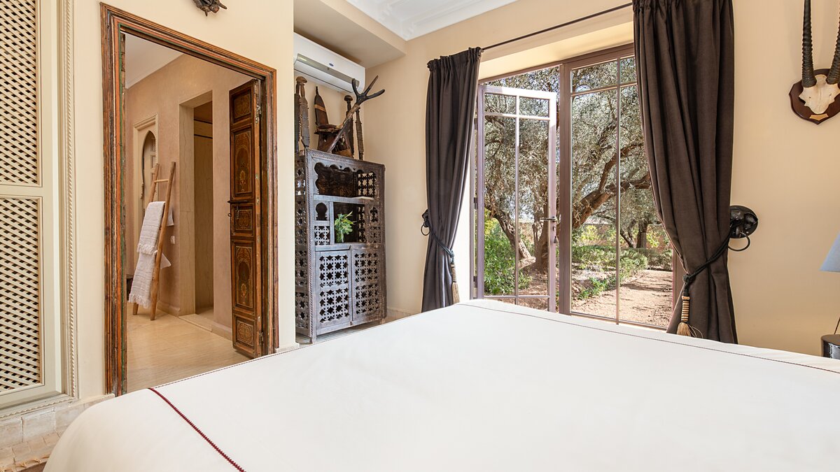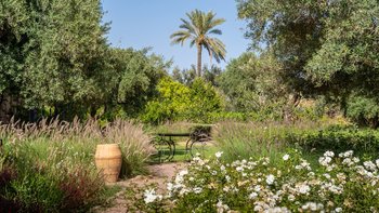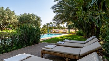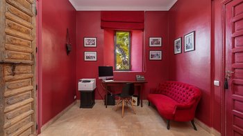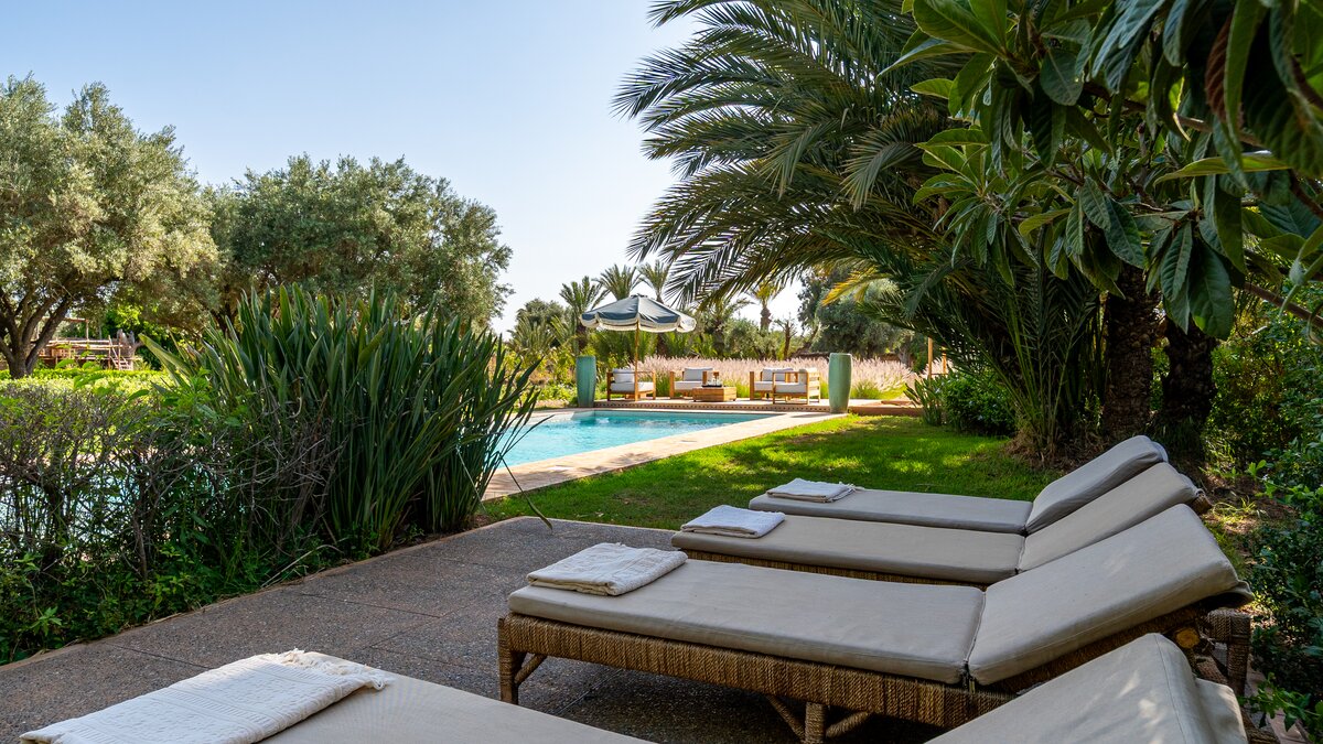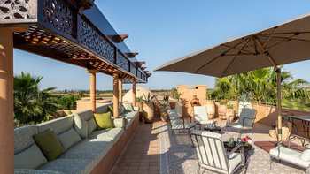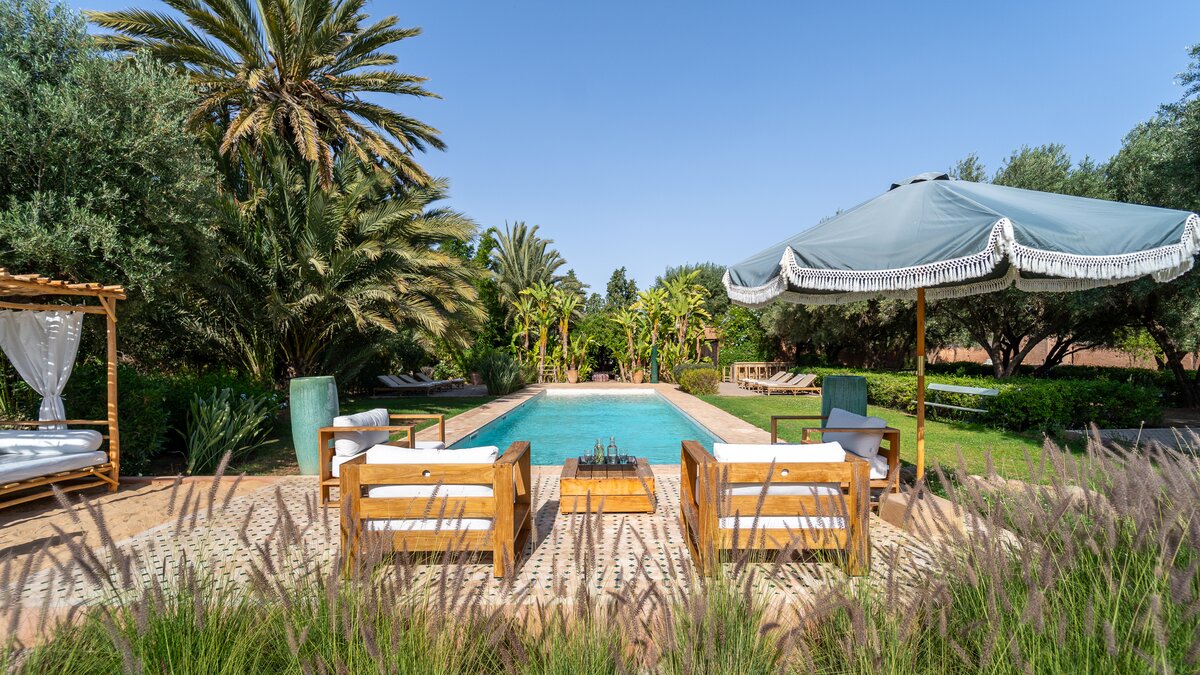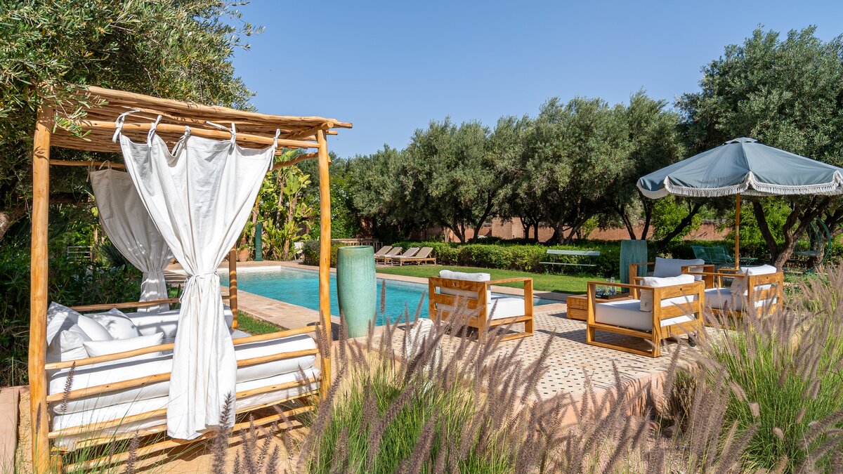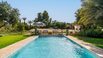 Dar Toozween ist eine sehr attraktive zweistöckige, nach Süden ausgerichtete Villa, nur eine kurze Autofahrt vom Zentrum von Marrakesch entfernt. Perfekt für das Leben im Freien geplant, liegt die Villa in einem Hektar gepflegter Gärten mit Rosen, Polemobäumen und Rosenhallen, Olivenbäumen, elegant eingerichteten Terrassen und einem großen und privaten beheizbaren Pool mit angrenzendem Essbereich und Poolhaus und.
