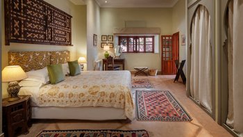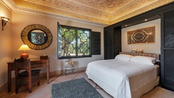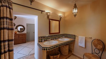 Villa Tamara ist ein beeindruckendes Landhaus, das 13 Kilometer südlich von Marrakesch an der Straße in das Ourika-Tal und das Atlasgebirge liegt. Es ist eine zwanzigminütige Fahrt vom Stadtzentrum und Flughafen entfernt. Dieses wundervolle Haus ist für alle Altersgruppen geeignet, von kleinen Babys bis hin zu weniger aktiven Großeltern. Erbaut von einem französischen Oberst im Jahr 1925, ist der Stil heute überwiegend mediterran und ergänzt die hohen Decken und hellen, geräumigen Zimmer. Traditionelle Dekorationstechniken wurden verwendet; Tadelakt (polierter Putz) funktioniert gut zusammen mit Zelige-Fliesen, Diss- und Bejmatt-Bricks. Denen Decken in der Villa sind 5 Meter hoch und die Wände 0,5 Meter dick, was eine hervorragende Isolierung gegen Hitze und Kälte der Winterabende bietet.
