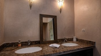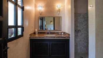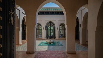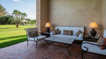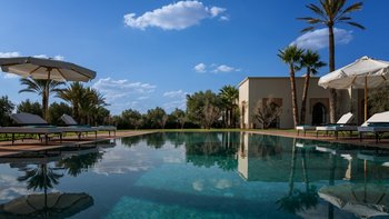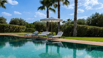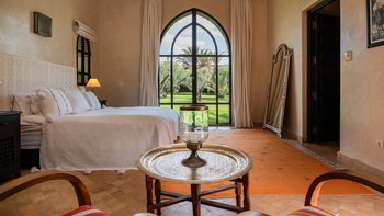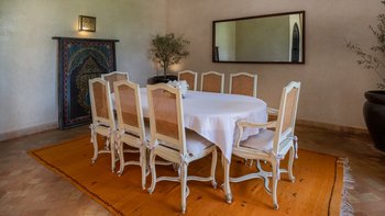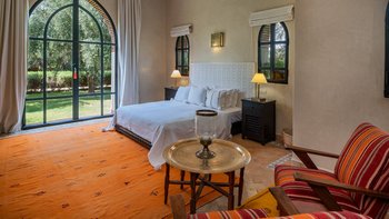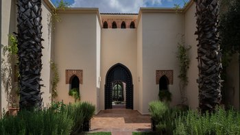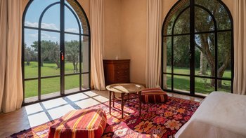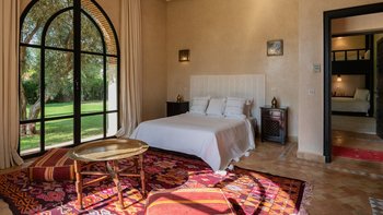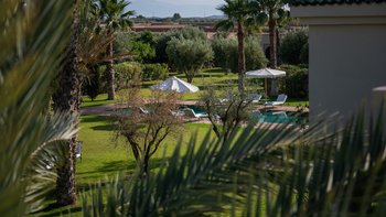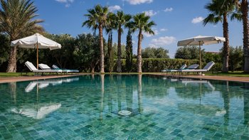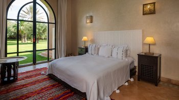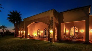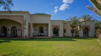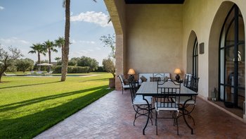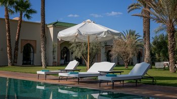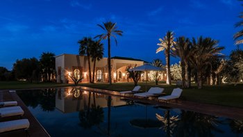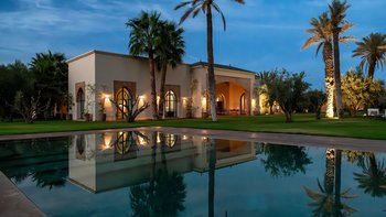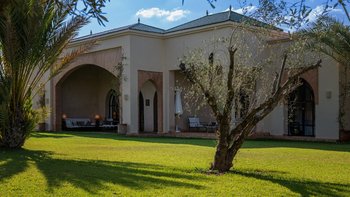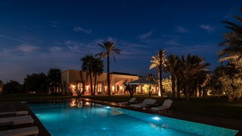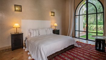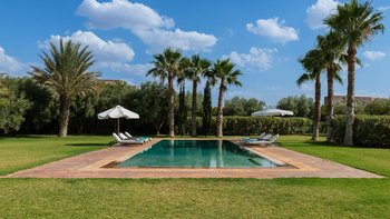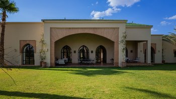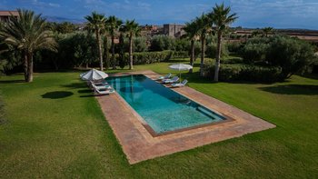 Der große Swimmingpool ist von Liegestühlen umgeben und befindet sich in einem 20 Hektar großen, wunderschön gepflegten Garten mit Palmen und Olivenbäumen. Dessen Anwesen befindet sich in der Nähe zahlreicher Golfplätze, gehobener Restaurants, Museen und kultureller Attraktionen in der Stadt Marrakesch und verfügt über Annehmlichkeiten wie ein Trampolin und Bereiche für Badminton, Basketball und Tischtennis. Dessen Villa Aradavi liegt nur 20 Minuten vom Stadtzentrum entfernt und ist ideal für Gäste, die die Wunder der Umgebung erkunden möchten.