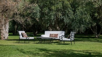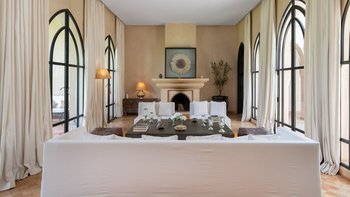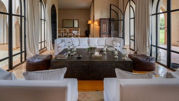 Die Innenräume der Villa sind geräumig und gut eingerichtet und tragen zur warmen und einladenden Atmosphäre bei, die im gesamten Gebäude herrscht. Der OFFENER GRUNDRISS Wohn- und Essbereich öffnet sich zum Innenhof und zu den Gärten der Villa und vermittelt von Raum zu Raum ein herrliches, luftiges Gefühl. Dessen privater Koch und die voll ausgestattete Küche der Villa ermöglichen es den Gästen, sich zu entspannen und exquisite Mahlzeiten zu genießen, ohne den natürlichen Fluss des Tages zu unterbrechen. Jedes der sechs Schlafzimmer der Villa bietet einen atemberaubenden Blick auf die Gärten und verbindet Komfort mit modernem Dekor.
