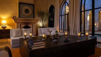 Die Villa Aradavi ist eine stilvolle Villa mit sechs Schlafzimmern in Marrakesch an den Ausläufern des Atlasgebirges. Sie bietet dreimal täglich einen Kochservice und ein beruhigendes, modernes Interieur.