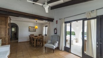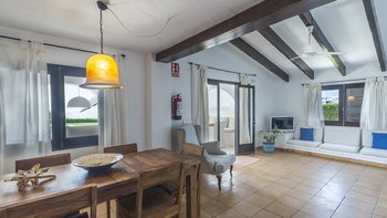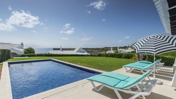 Die große, teilweise überdachte Terrasse ist mit großzügigen Sitzgelegenheiten, Sitzsäcken und einem Essbereich ausgestattet – der perfekte Rahmen für ein Abendessen im Freien vom Grill oder ein oder zwei Drinks, während die Sonne untergeht. Dessen Terrasse führt zum PRIVATER POOL, umgeben von Rasengärten. Ein Tor vom Grundstück öffnet sich zu einem Weg, der zu einem schmalen Zementpfad führt, der über die Felsen führt. Ein Leiter mit Stufen bietet Zugang zum Meer. Deren Anwesen ist nur 1,2 km von Binibeca mit seinen hübschen weiß getünchten Gebäuden und dem goldenen Halbmond Sandstrand mit Restaurant und anderen Einrichtungen entfernt. Deren Hauptstadt Mahón, nur 11 km entfernt, mit einer großen Auswahl an Geschäften und Restaurants, ist ebenfalls leicht zu erreichen.