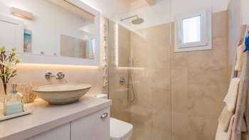 Direkt über dem Meer gelegen, ist diese moderne Villa auf Menorca in Gehweite von Geschäften und Restaurants eine hervorragende Wahl für zwei oder eine kleine Familie.