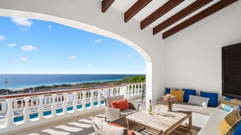 Villa Alba ist ein außergewöhnlicher Rückzugsort in der exklusiven oberen Gegend von San Jaime und bietet einige der atemberaubendsten Panoramablicke über die Südküste Menorcas.