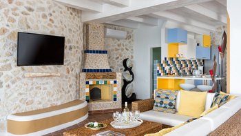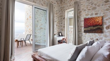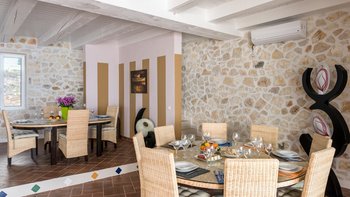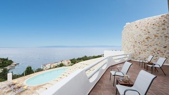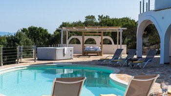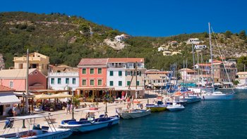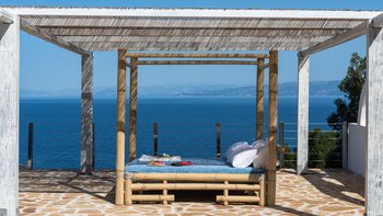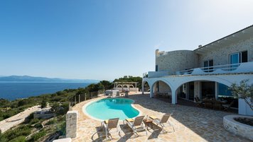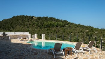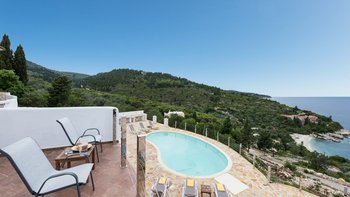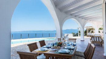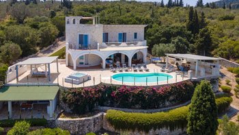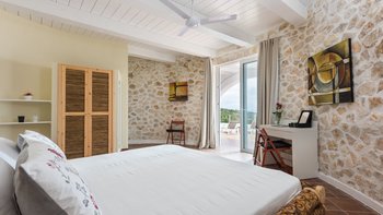 Diese helle, moderne Steinvilla mit weitem Meerblick liegt nur eine kurze Autofahrt vom malerischen Gaios entfernt und ist auch in der Nähe mehrerer schöner Strände.