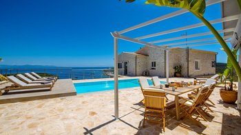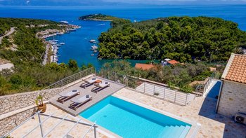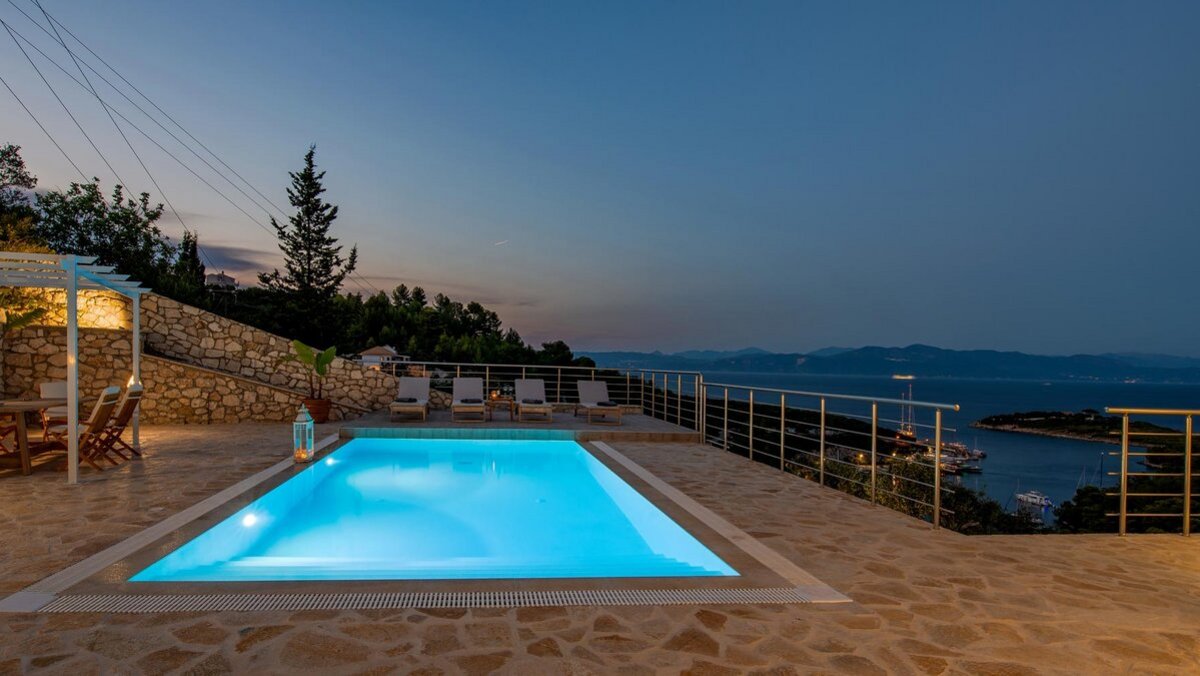 Im Außenbereich steht der Swimmingpool im Mittelpunkt, der von der Sonnenterrasse und den dazugehörigen Liegestühlen umgeben wird. Hier können die Gäste die warme mediterrane Sonne genießen, im Freien speisen oder einfach die schönen Landschaften der Region bestaunen. Wenns der Tag zum Abend wird, wird der Loungebereich im Freien zu einem bezaubernden Ort, um sich zu treffen, Geschichten auszutauschen und zu beobachten, wie die Sonne unter dem Horizont untergeht. Für diejenigen, die die Umgebung erkunden möchten, ist die erstklassige Lage der Villa nur einen Katzensprung von den charmanten Restaurants, Geschäften und kulturellen Attraktionen der Stadt Gaios entfernt. Denen Strände sind nur zwei Kilometer entfernt.