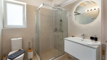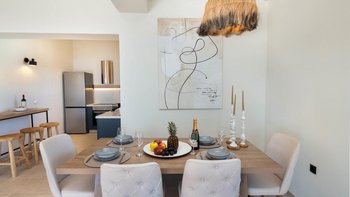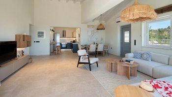 Im Inneren der Villa Alexa präsentiert sich eine durchdachte Mischung aus modernem Design und Komfort. Deren offene Wohnbereich mit stilvollen Möbeln und großen Fenstern, die den Raum mit natürlichem Licht durchfluten, bildet das Herzstück des Hauses. Eine voll ausgestattete Küche ermöglicht es den Gästen, köstliche hausgemachte Mahlzeiten nach eigenem Zeitplan zuzubereiten, während der angrenzende Essbereich der perfekte Ort ist, um diese in einer Gruppe zu genießen. Denen beiden Schlafzimmer sind durchdrungen von Komfort und Ruhe, und beide haben ein eigenes Bad. Ein separates drittes Badezimmer bietet ausreichend Platz für alle Gäste, um während ihres gesamten Aufenthalts in der Villa Alexa erfrischt und verjüngt zu bleiben.