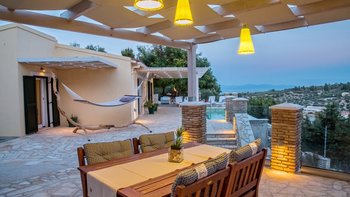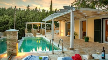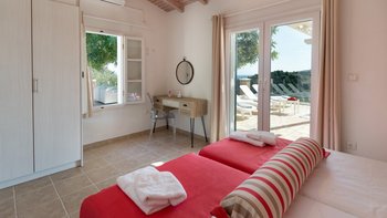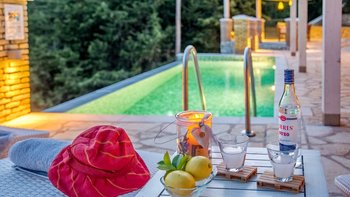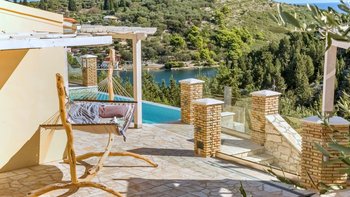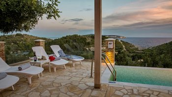 Dieses schöne Zwei-Bett-Anwesen befindet sich im Süden von Paxos und verfügt über einen schönen Infinity-Pool und einen außergewöhnlichen Meerblick.