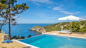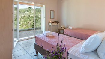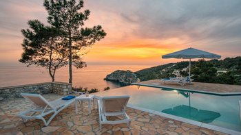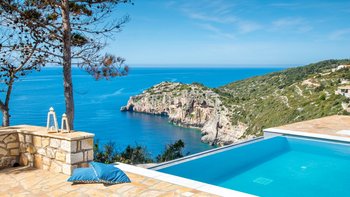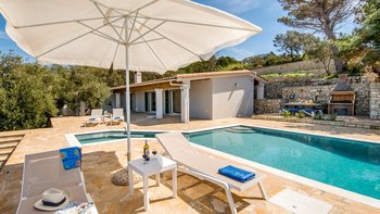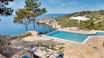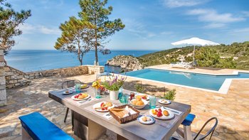 Mit spektakulärem Blick auf das Ionische Meer von einem Aussichtspunkt an der Westküste, ist die Villa Glaros eine abgeschiedene und moderne Villa, ideal für Gruppen von Freunden oder Paaren und in der Nähe der charmanten Gaios.