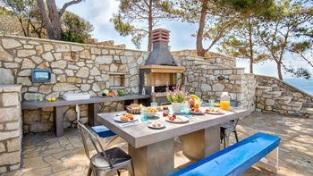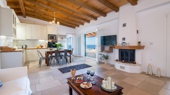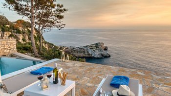 Hoch an der Westküste von Paxos gelegen, mit herrlichem Blick auf das Ionische Meer, ist die Villa Glaros das ideale Ziel für Gruppen von Freunden, Familien mit älteren Kindern und Paare, die einen ruhigen Rückzugsort suchen. Dessen Villa Glaros ist in einem modernen Stil eingerichtet und kombiniert klassische Holzmöbel mit modernen Einrichtungen für zusätzlichen Komfort. Der Esstisch im Freien, neben dem Grill und dem Vorbereitungs- und Vorbereitungsbereich, liegt in den Hang, ideal am atemberaubenden Infinity-Pool mit atemberaubendem Blick über die Klippen und das glitzernde Meer darunter.Der geräumige offene Küche, der Ess- und Wohnbereich hat direkten Zugang zur Terrasse. Die Villa Glaros verfügt über zwei Schlafzimmer im Erdgeschoss, ein Schlafzimmer mit Doppelbett und ein Zweibett, beide mit Zugang zur Terrasse und ein Doppelzimmer im Nebengebäude. Aller Zimmer verfügen über ein eigenes Bad mit Dusche. Yanna, ein bezaubernder Kieselstrand und das kosmopolitische Gaios mit all seinen Annehmlichkeiten sind nur eine kurze Autofahrt entfernt.