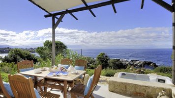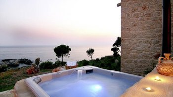 In den geräumigen Innenräumen dieser stilvollen Villa herrscht ein Gefühl der Gelassenheit. Vielleicht liegt es an dem Hintergrundrauschen des Meeres, das auf den Felsen unter Ihnen plätschert, oder an der attraktiven Verwendung natürlicher Materialien, die dem Haus einen Platz in renommierten Designmagazinen eingebracht haben, oder einfach daran, dass es nach den Grundsätzen des Feng Shui geplant und gestaltet wurde. Wahrscheinlich alle drei tragen ihren Teil dazu bei, ergänzt durch eine bequeme Einrichtung, ein aufgeräumtes Dekor in Erdtönen und eine herrliche Essterrasse, die sich direkt über einem von Felsen eingerahmten Sechs-Sitz-Whirl befindet und beide einen herrlichen Blick auf die Bucht bieten. Die drei klimatisierten Schlafzimmer der Villa sind eine ausgezeichnete Wahl für eine Familie oder eine Gruppe von Freunden und verfügen jeweils über ein eigenes Bad oder ein Duschbad. Deren Zimmer im Erdgeschoss bieten die Flexibilität von Doppel- oder Zweibettnutzung, während das Doppelzimmer im Obergeschoss sich auf einen schönen möblierten Balkon öffnet. Mit einem Felsenbad direkt darunter liegt die Villa nur wenige Schritte von den Geschäften, Bars und Tavernen von Stoupa und dem Sandstrand von Stoupa entfernt.