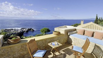 Die benachbarte Schwestervilla, Pelagia Cottage, könnte zusammen mit dem Haus für größere Gruppen gebucht werden.