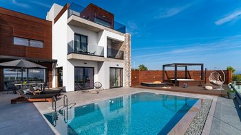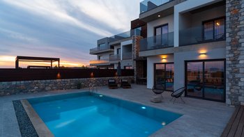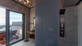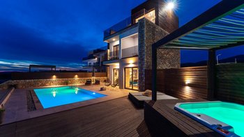 Das Ovio ist eine geräumige und supermoderne Villa mit einem Privater Pool und einem beheizten Whirlpool und bietet Ihnen von jedem der stilvollen Zimmer Panoramablick auf das Meer.