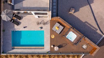 Draußen, auf der großen Terrasse, finden Sie einen großen Swimmingpool und einen beheizten Whirlpool für gemütliche Abende unter dem Sternenhimmel. Es gibt auch eine Pergola mit einem Esstisch für ein gemütliches Mittagessen in der Sonne. Deren Villa ist weniger als 3 km von Strandbars, Geschäften und Tavernen entfernt, während lokale Sehenswürdigkeiten wie Gennadi und Lachania sind.
