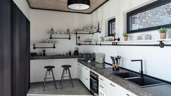 Ovio ist ein wunderbar stilvolles, dreistöckiges Anwesen auf Rhodos, entworfen mit einem außergewöhnlichen Blick auf die Ägäis. Deren gesamte Villa ist modern-industriell gestaltet und verfügt über Betondecken, einzigartige Metallarmaturen und graue Steinfliesen. Im Erdgeschoss befinden sich eine voll ausgestattete Küche, ein Essbereich und ein schöner Wohnbereich. Im ersten Stock finden Sie zwei große Schlafzimmer, jedes mit einem Kingsize-Bett ausgestattet, neben einem übergroßen Bad mit zwei Waschbecken und einer ebenerdigen Dusche. Auf der OBERSTE ETAGE befindet sich die fabelhafte Penthouse-Suite mit eigenem Bad und einer großen Terrasse mit Sonnenliegen und Liegestühlen zum Sonnenbaden.