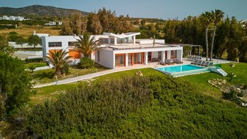 Topaz ist eine wirklich beeindruckende Villa auf Rhodos mit einzigartiger moderner Architektur und frischem, stilvollem Interieur. Deren Villa verfügt über einen geräumigen Wohn-, Ess- und Küchenbereich, der optimal gestaltet ist, um viel natürliches Licht zu lassen. Es gibt sieben schöne Schlafzimmer auf drei Etagen, von denen fünf mit einem eleganten Bad gepaart sind. Topaz ist ideal für einen Wellness-Rückzug und verfügt auch über einen gut ausgestatteten Fitnessraum, der Ihren Körper während Ihrer Abwesenheit glücklich und gesund hält. Fabelhafter Meerblick kann von fast überall genossen werden, insbesondere von den Wohnbereichen und Schlafzimmern an der Vorderseite der Villa.