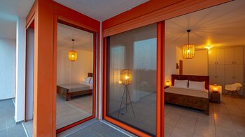 Kinder sind im Schlafzimmer im Erdgeschoss mit Zwischengeschoss nicht erlaubt, da es auf dem Balkon regnet.