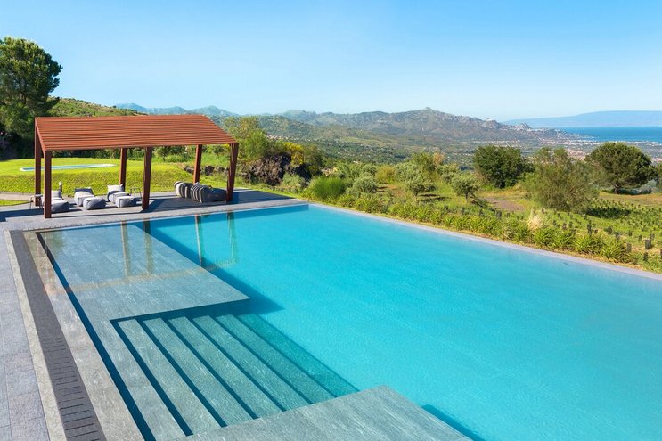 Die Villa Perricone bietet eine seltene Mischung aus modernem Luxus und sizilianischer Seele mit Panoramablick auf das Meer, einem privaten Spa und einem eigenen Weinkeller, alles in der Nähe des zeitlosen Reizes Taorminas.