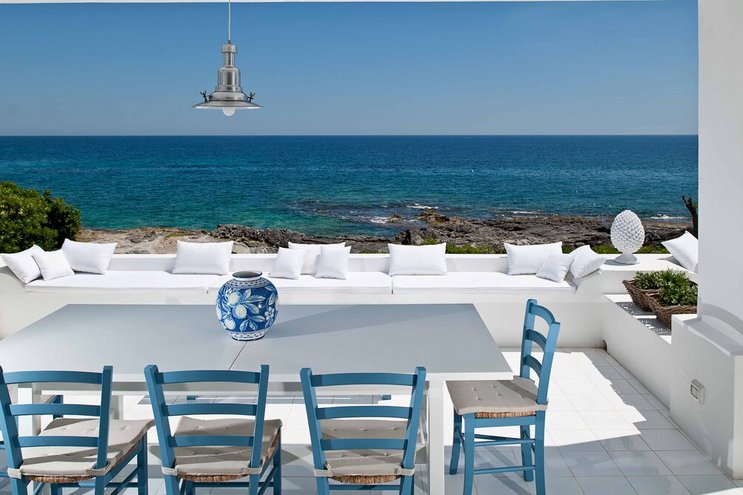 Luna Mare ist eine atemberaubende sizilianische Villa mit privatem Pool und direktem Strandzugang in herrlicher Lage direkt am Meer in der Nähe des Badeortes Fontane Bianche.