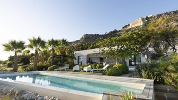Dieses moderne, von Architekten entworfene Haus liegt in einem Hügel mit Blick auf einen herrlichen und selten besuchten Abschnitt der südlich ausgerichteten Mittelmeerküste. Der wahre Anziehungspunkt dieser Immobilie ist der Außenbereich, mit einer großen gepflasterten Terrasse vor dem Haus, die hinunter zum atemberaubenden privaten Infinity-Pool führt, beide perfekt gelegen, um die unglaubliche Aussicht auf die Küste und das Meer zu genießen. Denen Terrasse, die den Pool umgibt, ist der ideale Ort, um auf einer Sonnenliege mit einem Glas Wein in der Hand zu entspannen. Hübsche mediterrane Gärten flankieren das Anwesen, Rosmarin und Lavendel duften die Luft. Im Zwischengeschoss befindet sich eine zweite teilweise schattige Terrasse, die mit duftenden Sträuchern bepflanzt ist, mit einem Essbereich im Freien und einem Grill, und es gibt auch eine hübsch geflieste Dachterrasse für Panorama-Drinks am Abend.