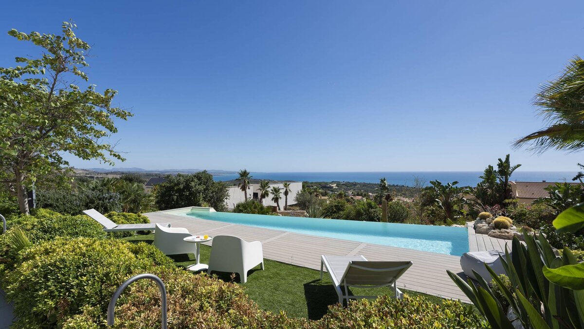 Eine gut ausgestattete moderne Villa mit einem atemberaubenden Poolbereich mit Blick auf das Meer. Dieser nach Süden ausgerichtete Villa ist sehr großzügig für eine kleinere Gruppe und liegt in der Nähe des Strandes und der historischen Stadt Sciacca.