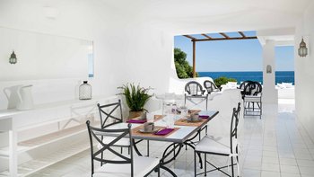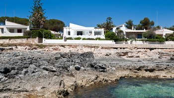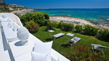 An der Südostküste Siziliens befindet sich das Casa Azzura in einer Ansammlung von Ferienhäusern im ruhigen Badeort Fontane Bianche. Ganz im strahlenden Weißen gegen das Blaue der Bucht liegt es direkt über dem Wasser, nur durch die felsige Küste und eine eigene Liegewiese vom Meer getrennt. Dessen wunderschöne umlaufende Terrasse der Villa ist perfekt für das Wohnen unter freiem Himmel geplant, mit einem schattigen Frühstücksbereich im Freien, eingebauten Sitzgelegenheiten in der Sonne und einem schicken Innen- und Außenwohnbereich, überdacht, aber offen, um die Brise zu fangen, und wunderschön eingerichtet zum Essen und Entspannen.