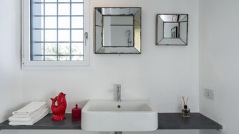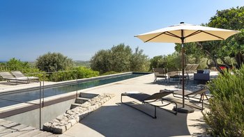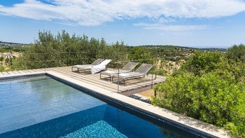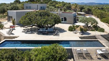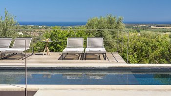 Das Cielo Mare ist ein auffallendes modernes Anwesen in privilegierter Lage, nur wenige Fahrminuten von fantastischen Stränden und historischen Städten entfernt. Deren modernes Interieur ist in klaren neutralen Weiß- und Grautönen gehalten und durchgängig stilvoll eingerichtet. Deren Erdgeschoss eignet sich für den Innen- und Außenbereich, mit einem großen Wohnzimmer, das über raumhohe Glastüren auf die Terrasse im Freien führt. Deren stilvolle Küche ist komplett ausgestattet mit allen notwendigen Notwendigkeiten und einem Esstisch im Innenbereich. Es gibt vier schöne Schlafzimmer mit eigenem Bad, zwei im Haupthaus und zwei im Gästeanbau. Deren einzigartige 18 m lange Pool ist eines unserer Lieblingsmerkmale, mit Sonnenschirmen und Liegen am Pool, auf denen Sie die umliegende Aussicht genießen können.