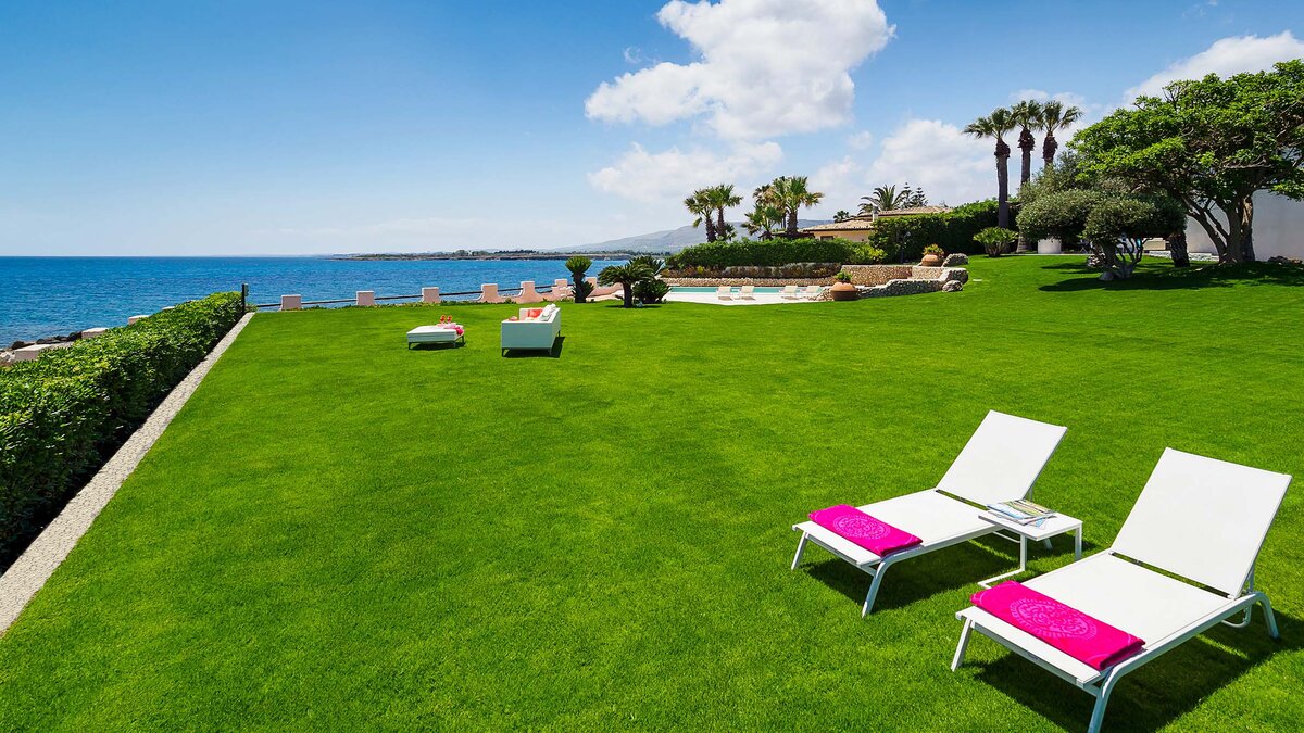 Luna Mare ist eine atemberaubende sizilianische Villa mit privatem Pool und direktem Strandzugang in herrlicher Lage direkt am Meer in der Nähe des Badeortes Fontane Bianche.