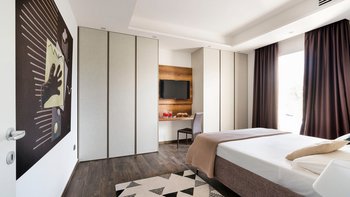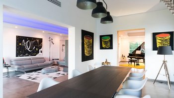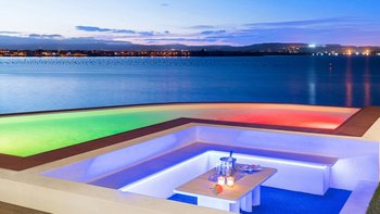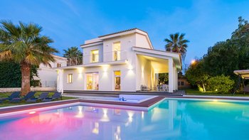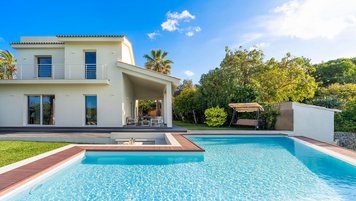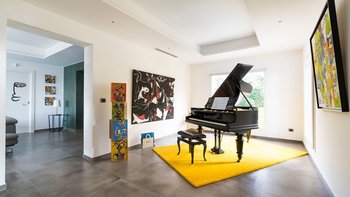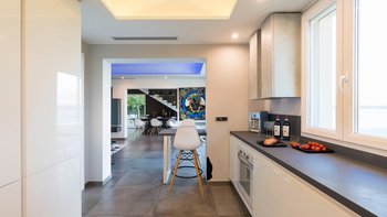 Orrizonte Mare ist ein modernes und minimalistisches Anwesen, das mit Stil und Liebe zum Detail entworfen wurde. Durch den cleveren Einsatz von farbigen Lichtern und zeitgenössischen Kunstwerken erhält diese Immobilie eine einzigartige und kreative Atmosphäre. Im Erdgeschoss befinden sich ein geräumiges Wohnzimmer mit weichen Ledersitzen, ein heller offener Essbereich, der sich zum Garten hin öffnet, und eine stilvolle, gut ausgestattete Küche; ein zusätzlicher Raum neben dem Wohnzimmer verfügt über einen großen Flügel für Musikliebhaber. Drei der vier Schlafzimmer befinden sich ebenfalls im Erdgeschoss, jedes mit einem Kingsize-Bett und einem geräumigen Bad. Im ersten Stock befindet sich die Master-Suite mit freistehender Badewanne.