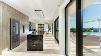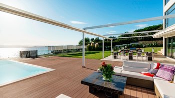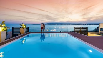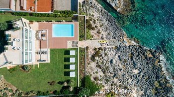 Die Aussicht (vor allem bei Sonnenuntergang) ist einfach atemberaubend in dieser erstklassigen Immobilie auf Sizilien, nur 10 km südlich des historischen Siracusa. Auf einem felsigen Vorgebirge auf der wunderschönen Halbinsel Maddalena steht die Lage direkt am Meer im Mittelpunkt. Riesige Glasfenster erobern das dreistöckige Haus und es gibt eine herrliche Menge Platz im Freien, um diese Aussicht wirklich zu genießen. Es gibt sogar einen Zugang zum Meer und zu den Felsen darunter. Gehe Sie zum eleganten beheizten Pool, um ein herrlich schönes Panorama zu genießen, und es gibt schöne Rasengärten und eine große Terrasse mit vielen Lounges und Essensbereichen und. Den ganzen Tag über ist es eine echte Sonnenfalle, aber das weitläufige Pooldeck mit den gemütlichen Rattansofas ist am besten, wenn der Sundowner rauskommt. Auch am Abend gibt es nichts Besseres, als ein herrliches Festmahl lokaler Spezialitäten vom Grill am riesigen Esstisch aus Granit zu genießen. Für alle Mahlzeiten, die tagsüber im Freien genossen werden, gibt es eine ausziehbare Markise, die während des heißen sizilianischen Wetters den nötigen Schatten spendet.