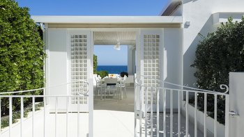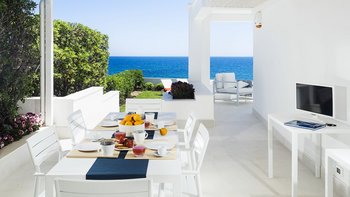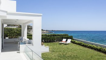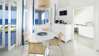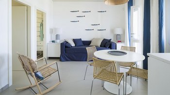 Perfekt für einen romantischen Rückzugsort, wenn Sie zu zweit oder für eine kleine dreiköpfige Familie gebucht werden. Sole e Mare ist ein Haus direkt am Meer, das nahtlos für totale Entspannung konzipiert ist. Es ist in einem frischen weißen Dekor mit blauen und grauen Akzenten eingerichtet. Dieser minimalistische Villa im übersichtlichen Küstenstil liegt über dem Meer, getrennt durch die felsige Küste und eine eigene Liegewiese. Im Freien verfügt diese Immobilie über einen wunderbaren Jacuzzi und einen schattigen Essbereich im Freien mit Grill und Zubereitung. Der offene Wohn- und Esszimmer, einschließlich einer modernen und gut ausgestatteten Küche, hat direkten Zugang durch eine verglaste Tür auf die Terrasse mit Meerblick.