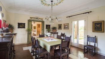 In der Nähe von Salemi, einer traditionellen Stadt in der Provinz Trapani, in ruhiger und sonniger Lage, ist die Villa Leonardo der perfekte Rückzugsort für Familien und Freunde, weit weg von allem. Dessen neu renovierte Anwesen hat einen typisch sizilianischen Stil mit olivgrünen Tönen, Pastellfarben, passenden Vorhängen und Stoffen und ist mit klassischen Holzmöbeln und modernen Einrichtungen ausgestattet. Es gibt viele Außenbereiche, vom gepflegten mediterranen Garten bis zur überdachten Veranda für Mahlzeiten im Freien und dem privaten Pool, von dem aus die Gäste die Umgebung genießen können. Deren Erdgeschoss der Villa besteht aus einem Wohnbereich mit Kamin, einem Esszimmer, einem Bad und einer gut ausgestatteten Küche.