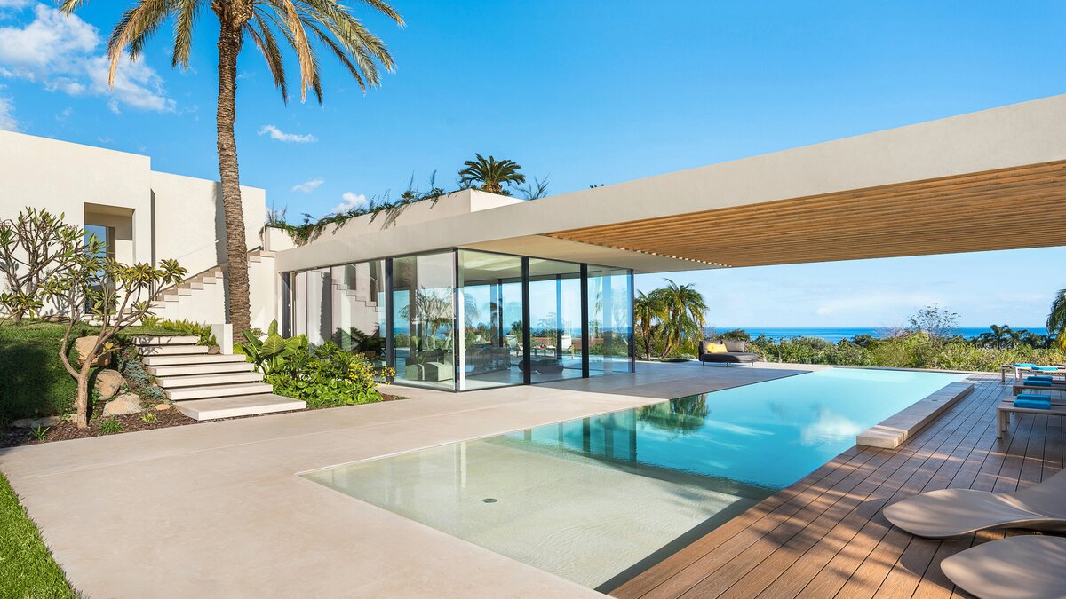 Im Außenbereich bildet der spektakuläre Infinity-Pool den Mittelpunkt der Villa, der mit dem Horizont zu verschmelzen scheint, mit Blick auf Zitrushaine und das glitzernde Ionische Meer. Eine Reihe von einladenden Terrassen bieten viel Platz für Mahlzeiten im Freien und ruhige Momente, umrahmt von farbenfrohen Gärten.