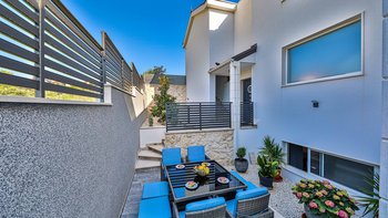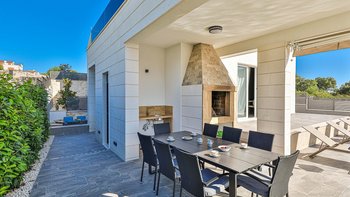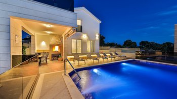 Die Villa Baya liegt in einer schillernden Bucht in der Nähe der Stadt Rogoznica und ist eine moderne Villa mit vier Schlafzimmern für Gruppen von Familie und Freunden. Nur 50 Meter vom Meer entfernt bietet das Anwesen von jedem Balkon und jeder Terrasse eine außergewöhnliche Aussicht. Dessen helle Interieur besteht aus einem geräumigen Wohnzimmer, in dem die Gäste einen gemütlichen, entspannten Abend verbringen können, einer eleganten, voll ausgestatteten Küche und einem Esszimmer. Dessen Anwesen verfügt auch über vier atemberaubende Schlafzimmer mit eigenem Bad, jedes elegant gestaltet und komplett mit einem Flatscreen-TV. Eine Sauna, ein Billardtisch, ein Tischfußball und ein Fitnessraum stehen den Gästen zur Verfügung. Das Äußere der Villa wurde sorgfältig gestaltet mit Sitzbereichen, die am besten die Aussicht genießen, einem eingebauten Grill, einem Esstisch im Freien und einem großen Pool. Es gibt auch einen Spielplatz für die Kleinen.