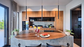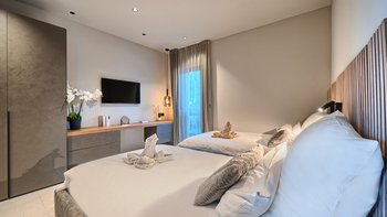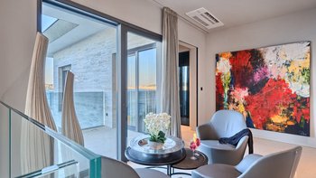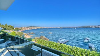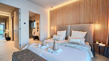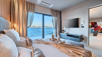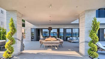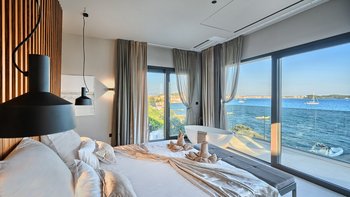 Beim Betreten werden die Gäste von einem offenen Wohnbereich begrüßt, der Wärme und Raffinesse ausstrahlt. Deren geräumige Lounge verfügt über bequeme Sitzgelegenheiten und geht mühelos in den Essbereich über, wo ein großer Tisch Platz für bis zu zehn Gäste bietet. Deren raumhohen Fenster tauchen den Raum in natürliches Licht und Rahmen für einen bezaubernden Blick auf das schimmernde Meer ein. Deren elegante Küche mit einer zentralen Insel ist voll ausgestattet für kulinarische Abenteuer, sei es bei der Zubereitung frischer Meeresfrüchte oder bei einem gemütlichen Frühstück. Jedes der vier Schlafzimmer mit eigenem Bad hat seinen eigenen Charme, mit Merkmalen wie einer Badewanne oder einer ebenerdigen Dusche, die dafür sorgen, dass sich die Gäste nach einem langen Erkundungstag in aller Ruhe entspannen können.