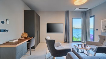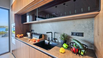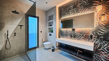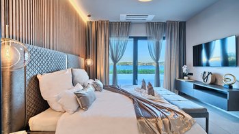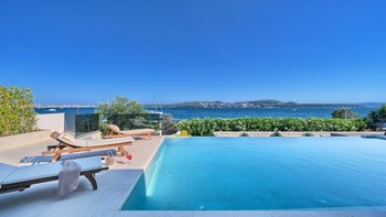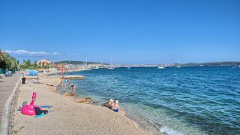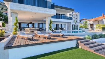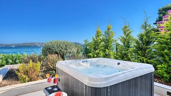 Im Außenbereich verwandelt sich die Villa Paragon in eine ruhige Oase der Entspannung. Der beheizbare Meerwasser-Infinity-Pool fügt sich nahtlos in das azurblaue Wasser der Adria ein und schafft einen bezaubernden Ort zum Sonnenbaden oder ein erfrischendes Bad. Der Whirlpool ist perfekt für die abendliche Entspannung unter dem Sternenhimmel. Inmitten üppiger Gärten gibt es zahlreiche Bereiche zum Entspannen oder Essen im Freien, so dass es leicht ist, Mahlzeiten im Freien zu genießen, während man die Küstenatmosphäre genießt. Der Strand ist nur wenige Meter entfernt und die örtlichen Annehmlichkeiten befinden sich in unmittelbarer Nähe, sodass die Gäste leicht in das Dorfleben eintauchen können. Für diejenigen, die die Umgebung erkunden möchten, ist die UNESCO-Weltkulturerbestätte Trogir nur zwei Kilometer entfernt und bietet eine reiche Geschichte und Kultur zum Entdecken. Dessen Villa Paragon lädt die Gäste ein, sich zu entspannen und bleibende Erinnerungen an diese wunderschöne Ecke Kroatiens zu schaffen.