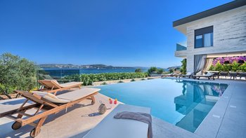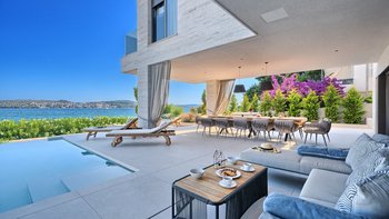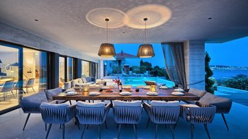 Die Villa Paragon befindet sich im charmanten Dorf Seget Donji und ist ein Rückzugsort mit vier Schlafzimmern am Wasser in der Nähe von Split, Kroatien, und verspricht alle Vorzüge einer privaten Oase.