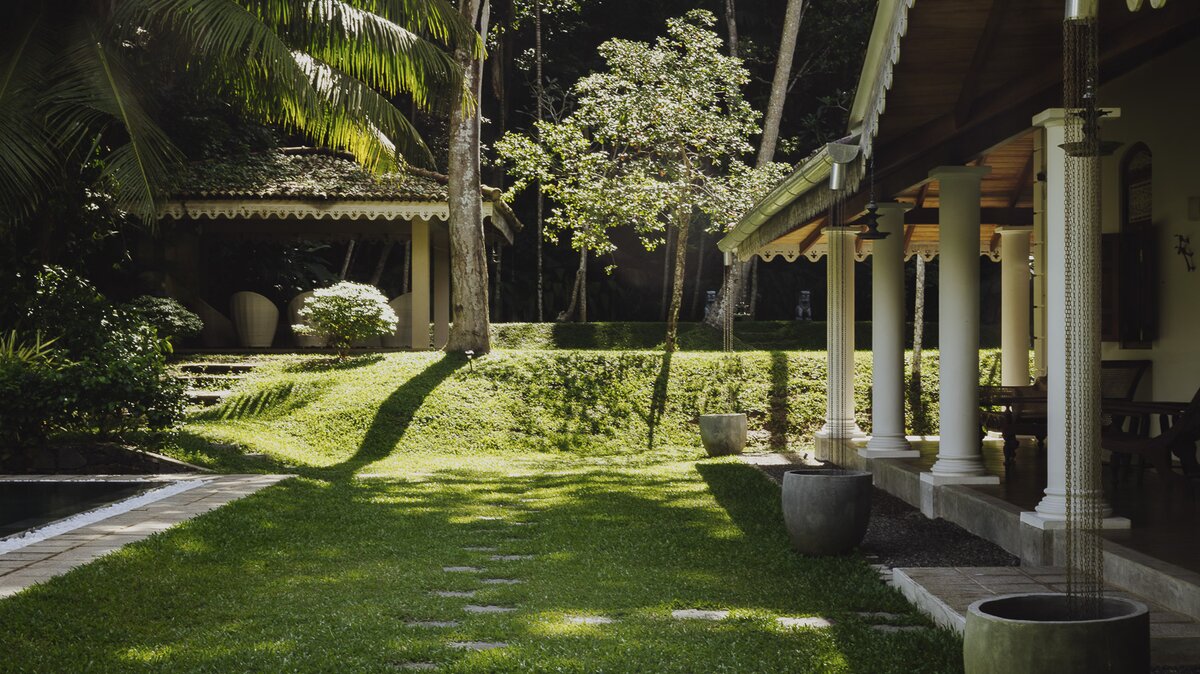 Kingfisher ist eine private Villa mit vier Schlafzimmern in Gehweite zum Strand in der Nähe von Weligama, umgeben von üppigem Grün.