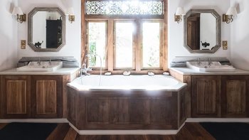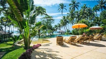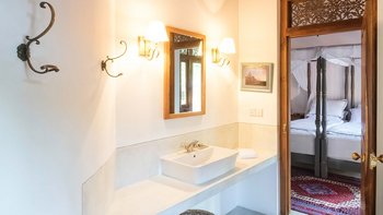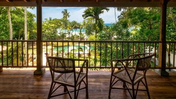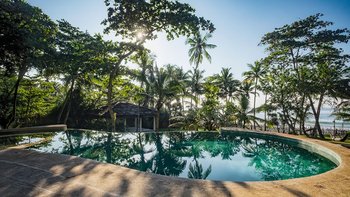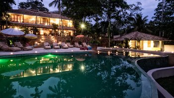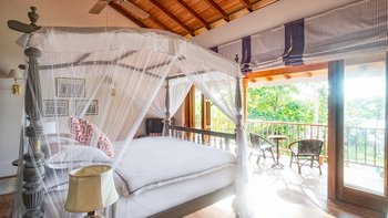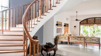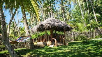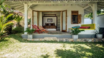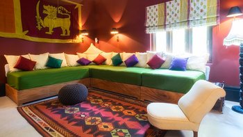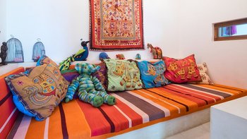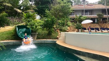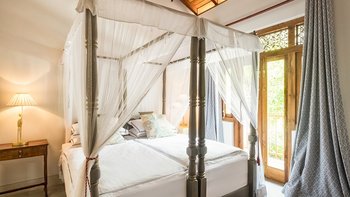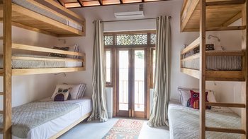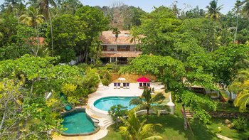 Draußen auf einem niedrigeren Terrassendeck mit bequemen Liegestühlen und reichlich Sonnenplätzen befindet sich der einzigartige, nierenförmige Infinity-Pool mit abfallendem Strandzugang, ideal für Kinder; Eine 20 m lange Wasserrutsche, die in das benachbarte Tauchbecken fällt, bietet stundenlangen Spaß für die Kleinen, während die Schwimmer ungestört sind – oder sie entscheiden sich für weitere Entspannung im Jacuzzi. Denen angelegten Gärten bieten eine ruhige Yoga-Shala mit Blick auf das Meer, die oft auch für einen buddhistischen Segen genutzt werden kann, während Hängematten zwischen den Palmen unten am Strand schwingen. Fürs Cricket kann auch ein Wicket aufgestellt werden. Denen Unterhaltung setzt sich in der Villa mit einem Kinoraum und einer bunten Kinderstube fort. Eine Wendeltreppe aus Teakholz von der schönen Eingangshalle und dem prächtigen Wohnzimmer führt zu sechs Schlafzimmern im Haupthaus, bestehend aus drei Master-Suiten mit Himmelbetten, zwei Zweibettzimmern und einem Mega-Etagenzimmer für bis zu 6 Kinder; das siebte Schlafzimmer befindet sich in der schönen Gartensuite.