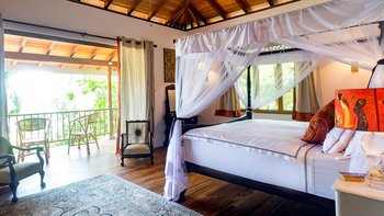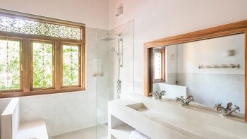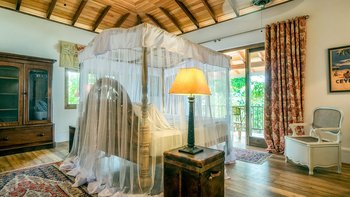Moonstone ist ein ganz besonderes Haus, das Spaß für alle Altersgruppen verspricht, mit eigenem Zugang zu einem Sandstrand. Durchdacht gestaltet und schön eingerichtet, befindet sich die Villa an der Spitze eines weitläufigen tropischen Gartens mit Panoramablick auf das Meer. Großzügig ausgestattet mit allem Komfort, gibt es einen herrlichen offenen Grundriss Wohn- / Esszimmer mit Frühstückstisch und einem weiteren Esstisch auf der geräumigen Veranda. Eines Wendeltreppe aus Teakholz von der schönen Eingangshalle und dem Wohnzimmer führt zu sechs Schlafzimmern im Haupthaus, bestehend aus drei Master-Suiten mit Himmelbetten, zwei Zweibettzimmern und einem Mega-Etagenzimmer für bis zu 6 Kinder; Das siebte Schlafzimmer befindet sich in der schönen Gartensuite.