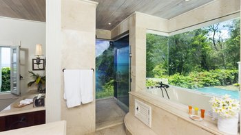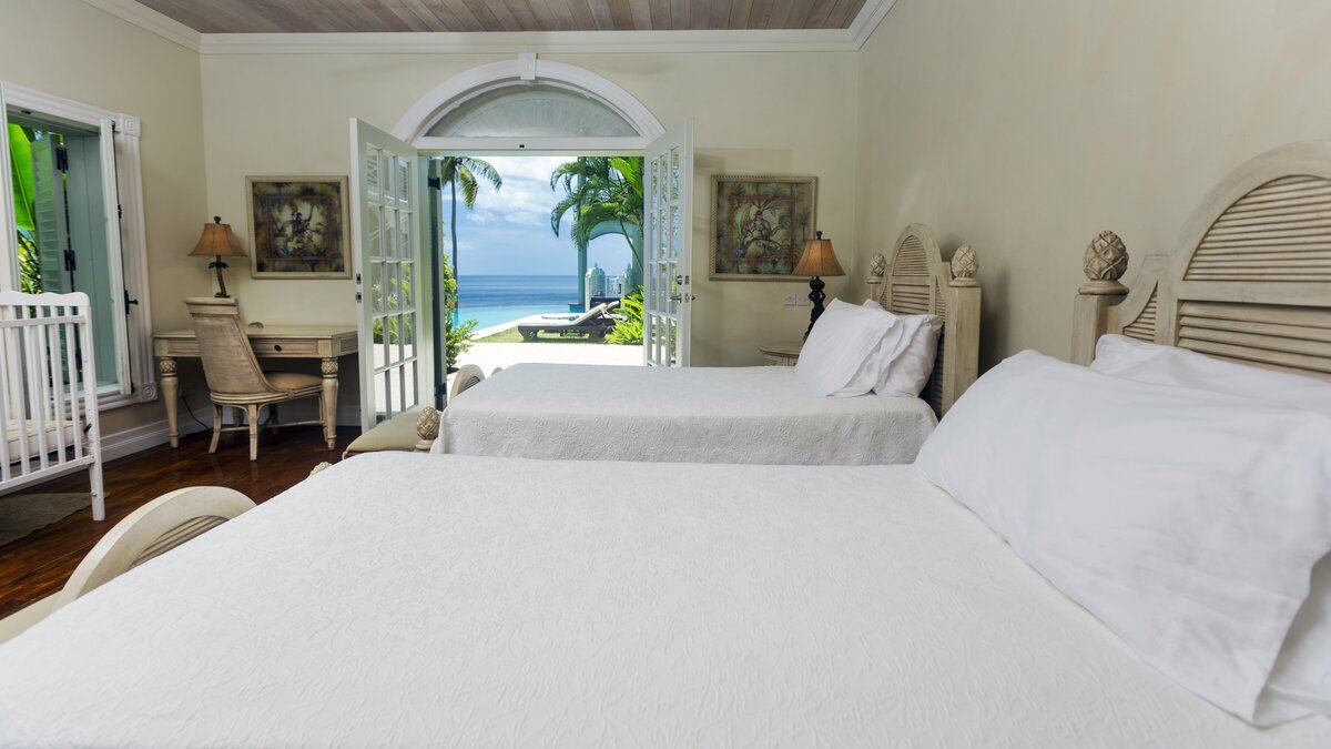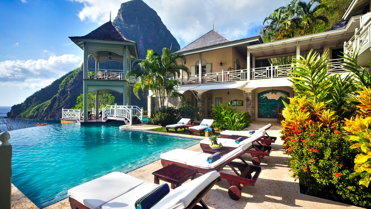 Dieses wunderschöne Haus, bei dem fast jeder Raum nach außen hin geöffnet ist, ist perfekt für ein nahtloses tropisches Leben im Innen- und Außenbereich konzipiert. Im Erdgeschoss befindet sich eine gut ausgestattete Küche mit einem Gang, der zu einem geräumigen Wohn-/Esszimmer führt. Von hier aus gelangen Sie über französische Türen zu einem Balkon mit weichen Sitzgelegenheiten, der zu einem Pavillon auf der oberen Ebene führt, der für Mahlzeiten im Freien mit Blick auf den Pool eingerichtet ist. Ebenfalls im Erdgeschoss befindet sich die außergewöhnliche Master-Suite mit eigenem Bad mit Jacuzzi-Badewanne und separater Regendusche, ein privater Balkon mit herrlichem Blick auf Petit Piton sowie ein PRIVATER POOL und eine Sonnenterrasse in einem abgeschiedenen, geschlossenen Gartenbereich. Dies ist wirklich eine dekadente Suite für ein Paar, das einen besonderen Anlass feiert. Vervollständigt wird das Erdgeschoss durch zwei weitere Doppelschlafzimmer, beide mit Badezimmern mit Jacuzzi-Badewannen und separaten Duschen en suite und Zugang zu einem privaten Balkon oder einer Terrasse. Eine Treppe führt hinunter in das untere Erdgeschoss, wo sich zwei Zweibettschlafzimmer mit Badezimmern en suite, einschließlich Jacuzzi-Badewannen und separaten Duschen, sowie Türen zu einer Terrasse oder einem Balkon befinden. Ein Familienzimmer vervollständigt das untere Erdgeschoss, das sich zur Poolterrasse hin öffnet. Draußen erstreckt sich der große private Infinity-Pool um eine Ecke des Grundstücks, ein Wasserfall und eine schattige Natursteingrotte sorgen für Interesse und bieten Schutz vor der Sonne. Der zweistöckige Pavillon und das Sonnendeck sind über eine Brücke über den Pool zugänglich, während die untere Hälfte mit Liegestühlen ausgestattet ist und die Gäste direkt ins Wasser schlüpfen können. Der Sugar Beach Resort ist nur 0,5 km entfernt, wo Sie ein Spa, Bars und Restaurants und zwei weiße Sandstrände finden, während Soufriere nur eine kurze Autofahrt vom Haus entfernt ist.
