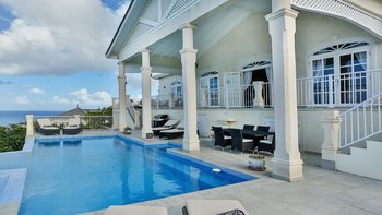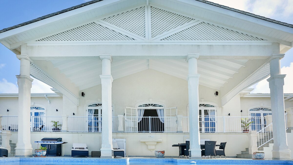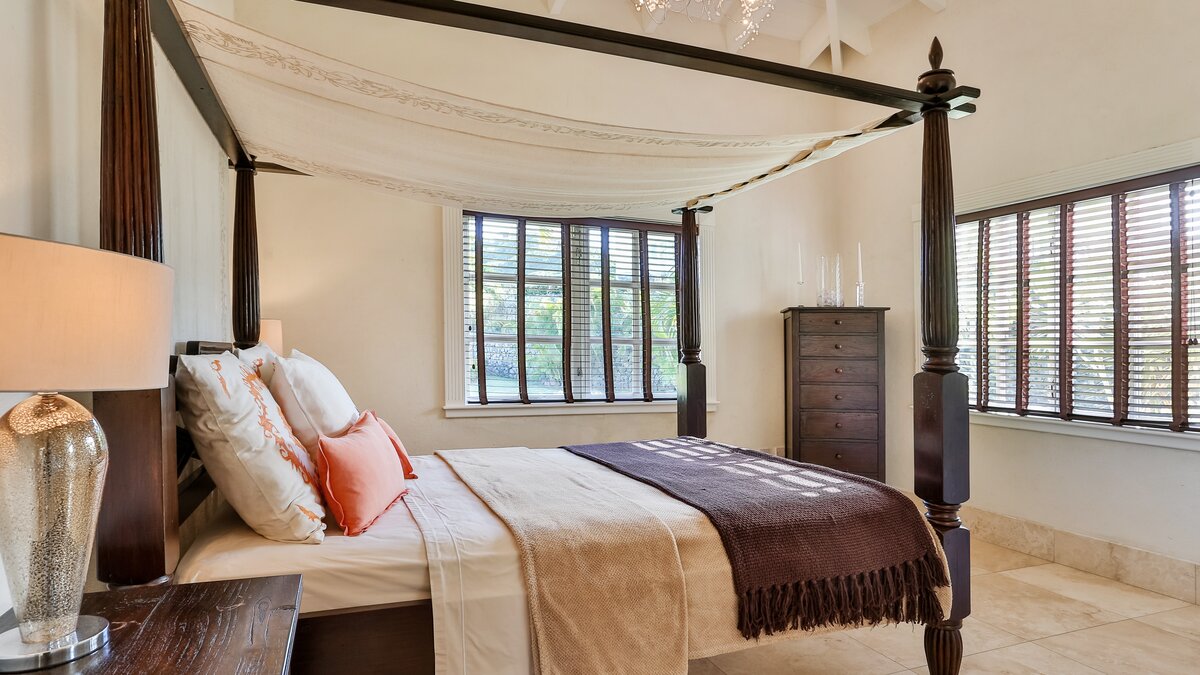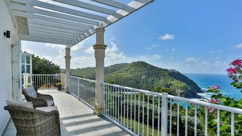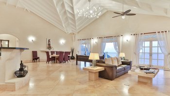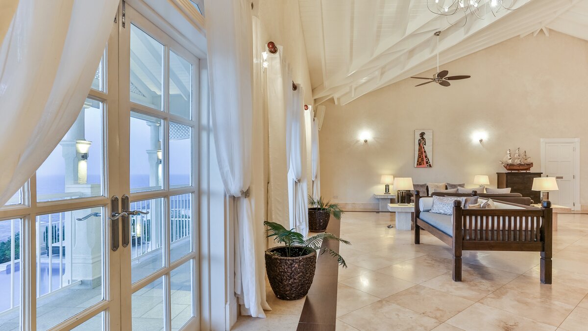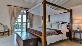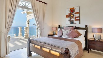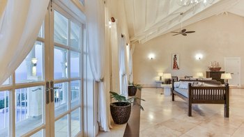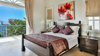 In der Hauptvilla gibt es einen enormen OFFENER GRUNDRISS Wohn- und Essbereich. Dieser Raum hat hohe Decken, viel Tageslicht und eine Handvoll Fenstertüren, die Zugang zu einer Terrasse mit Blick auf das Meer und Martinique bieten, während sich direkt an der Seite eine moderne, voll ausgestattete Küche befindet. Darüber hinaus gibt es drei Schlafzimmer. Eines Hauptschlafzimmer mit einem Kingsize-Himmelbett, Bad en suite und Zugang zum Balkon und zwei Doppelzimmer, beide mit Bad en suite.