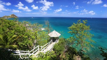 Es wäre schwer, einen romantischeren Honeymoon zu finden als diese Luxusvilla auf St. Lucia. Das Hideaway-Haus liegt über einer sandigen Bucht und verwandelt das Leben im Innen- und Außenbereich in eine exquisite Kunstform.