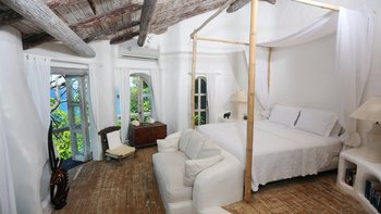 Es gibt Zeiten, in denen es in dieser ultra-schicken Villa wirklich schwierig ist, die luftigen Innenräume von den fabelhaft eingerichteten Terrassen unter freiem Himmel zu unterscheiden. Es ist auch unvorstellbar, dass das unverwechselbar gestaltete, charaktervolle Haus am Rande des Wassers jemals nachgebaut werden könnte, so dass dies in jeder Hinsicht ein einzigartig romantischer Rückzugsort ist. Umgeben von tropischen Gärten, sieht ein großer Lagunenpool wie ein natürlicher Meeresarm aus, ein möblierter Pavillon scheint über dem Meer zu hängen, während ein anderer sich privat auf einem Netz von Wanderwegen versteckt, die sich durch üppiges Grün schlängeln. Und nur wenige Minuten entfernt, direkt unter dem Gelände, ist Smugglers Cove ein malerischer kleiner Strand mit hervorragenden Schnorchelgewässern. Das Haus selbst ist modern eingerichtet mit indonesischen Antiquitäten und weichen weißen Sofas, die Küche/Esszimmer ist mit drei offenen Wohnbereichen verbunden, das Hauptschlafzimmer verfügt über ein Himmelbett und eine Badewanne für zwei Personen. Ein zweites Schlafzimmer mit Doppelbett teilt sich das untere Erdgeschoss mit einem Arbeits-/Bibliotheksbereich und das wunderbare Personal bereitet fabelhaftes Essen zu und bleibt dabei beeindruckend diskret.
