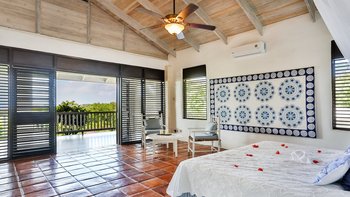 Sehr stilvoll, sehr geräumig und wunderschön in schwarz und weiß eingerichtet, verfügt die Villa Lucy über einen hohen Standard an Komfort, der durch den Inklusiv-Kochservice ergänzt wird. Eine ausgezeichnete Wahl für ein großes Treffen mit Familie oder Freunden, liegt sie in privater Lage in einem großen Landschaftsgarten auf den Windward Hills und strahlt eine Atmosphäre der Entspannung aus. Ein schickes Wohn-/Esszimmer im Haus wird durch eine überdachte Veranda ergänzt, die Sitz- und Essbereiche im Freien bietet und einen Blick auf den Freiform-Pool bietet. Auf der einen Seite befindet sich eine Holzterrasse mit Liegestühlen. Auf der anderen Seite befindet sich ein entzückender kleiner Pavillon mit eingebauten Bänken, die mit dicken Kissen gestapelt sind. Die Villa verfügt über eine flexible Mischung aus vier Doppel- und drei Zweibettzimmern, alle mit eigenem Bad oder Dusche, einige mit Zugang zu einem großen und luftigen Balkon. Ein kleines Einzelzimmer, geeignet für ein Kind, steht ebenfalls zur Verfügung (gegen Aufpreis). Villa Lucy liegt in der Nähe von zwei Sandstränden und der kosmopolitischen und Rodney Bay, eine fünfminütige Fahrt von Golf und Tennis und etwa fünfundzwanzig Minuten von der Hauptstadt Castries entfernt.