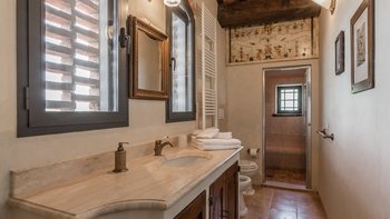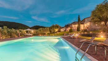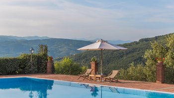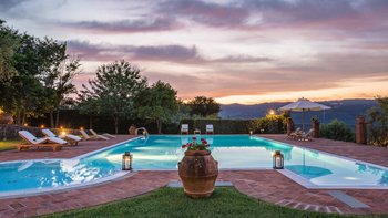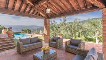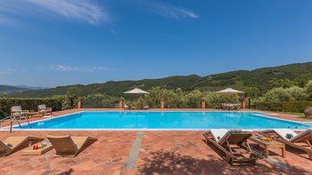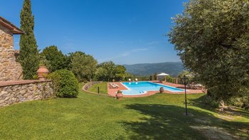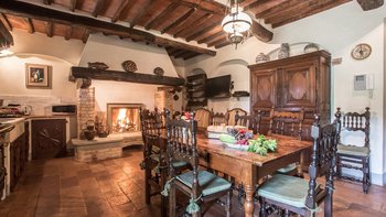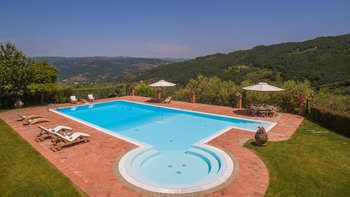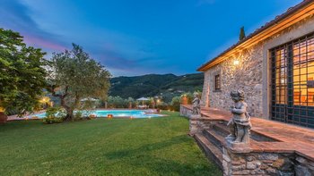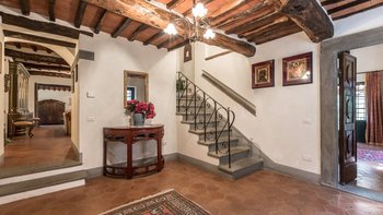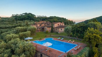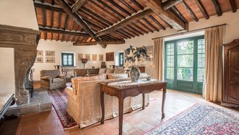 Diese typisch toskanische Villa aus dem 18. Jahrhundert ist eine luxuriöse Ergänzung zu den sanften Hügeln von Valdinevole. In der Nähe der historischen Altstadt von Monsummano Alto gelegen, ist dieser ursprüngliche Bauernhauskomplex heute ein eleganter Rückzugsort. Während moderner Komfort den alten Landhausstil ergänzt, liegt sein Charme vor allem in seinen klassischen Elementen. Deren Außenwände sind aus lokalem Stein und überall schmücken originale Artefakte und antike Möbel jede Wand, jeden Boden und jeden Raum. Deren große offene Küche ist ein traditionelles toskanisches Juwel mit einem funktionierenden Kamin, einem alten Backofen und sogar einem über 250 Jahre alten Waschbecken. Durch wunderschöne antike Türen gelangen Sie in das geräumige Wohn- und Esszimmer, in dem 10 florentinische Stühle aus dem 17. Jahrhundert den perfekten Rahmen für das Abendessen bieten. Im Obergeschoss verbindet jedes der Schlafzimmer eine herrliche Aussicht mit einem alten Innencharakter. Des Hauptschlafzimmer verfügt über ein eigenes Bad mit einem türkischen Bad, während es nebenan ein weiteres geräumiges Doppel- und Zweibettzimmer gibt. Diese teilen sich ein Bad mit einer eigenen Jacuzzi-Badewanne. Draußen bietet eine große, offene Terrasse ein entspanntes Sonnenbad – es gibt einen Grill, der sich hervorragend zum Essen im Freien eignet, und einen extrem großen Pool und ein Dach und Deck, das mit seinem Poolhaus und Außenduschen eine moderne Note verleiht.